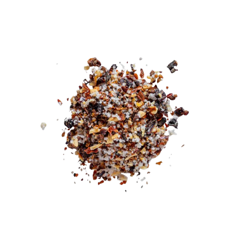 Das Ergebnis: ein komplexes, harmonisches Würzsalz, das jedem Gericht – ob Fleisch, Fisch oder Gemüse – einen unverwechselbaren, leicht rauchig-scharfen Kick verleiht. Perfekt als Finish oder Marinengrundlage, mit Geling-Garantie aus Profihand.