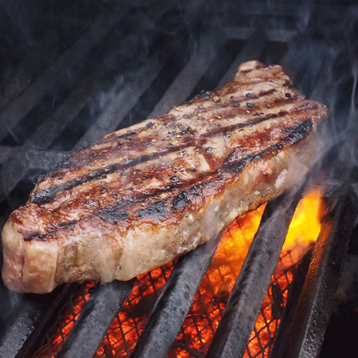 Das Steak auf den Grill legen, erst wenden, wenn sich das Fleisch löst. Auf den gewünschten Punkt garen und erst zum Schluss mit Salz und Pfeffer würzen.