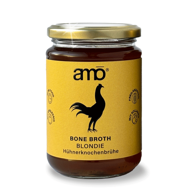 amo steht für moderne Bone Broth in Bio-Qualität, die einfach in den Alltag passt.Unsere Brühen werden aus hochwertigen Bio-Zutaten hergestellt und über 18 Stunden gekocht, damit Geschmack, Qualität und traditionelle Herstellung bestmöglich zusammenkommen. amo verbindet die Kraft einer klassischen Brühe mit einem modernen Anspruch an Convenience, Klarheit und gutes Design. So entsteht ein ehrliches, hochwertiges Produkt für Menschen, die sich bewusst ernähren wollen, aber im Alltag eine unkomplizierte Lösung suchen.